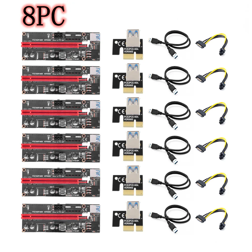 8/10 Pcs PCI E USB Riser 009S Dual 6Pin Adapter Karte SATA 15pin PCI-E pcie Riser 009 Express 1X 4x 8x 16x Extender für BTC Miner.