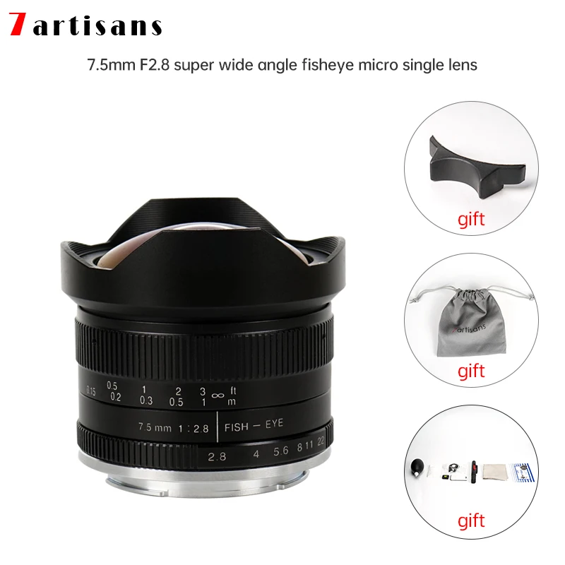 Billig 7artisans 75mm f 28 fisheye objektiv 180 APS-C Manuelle Festen Objektiv Für E Montieren Canon EOS-M Mount Fuji FX mount Heißer Verkauf Freies Verschiffen