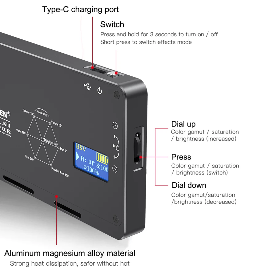 Bonus MAMEN Voll Farbe RGB Video Licht 1000K-9000K Fotografische Beleuchtung 4000 mAh CRI 96 + Lampe Für studio Youtube Vlog Kamera Licht