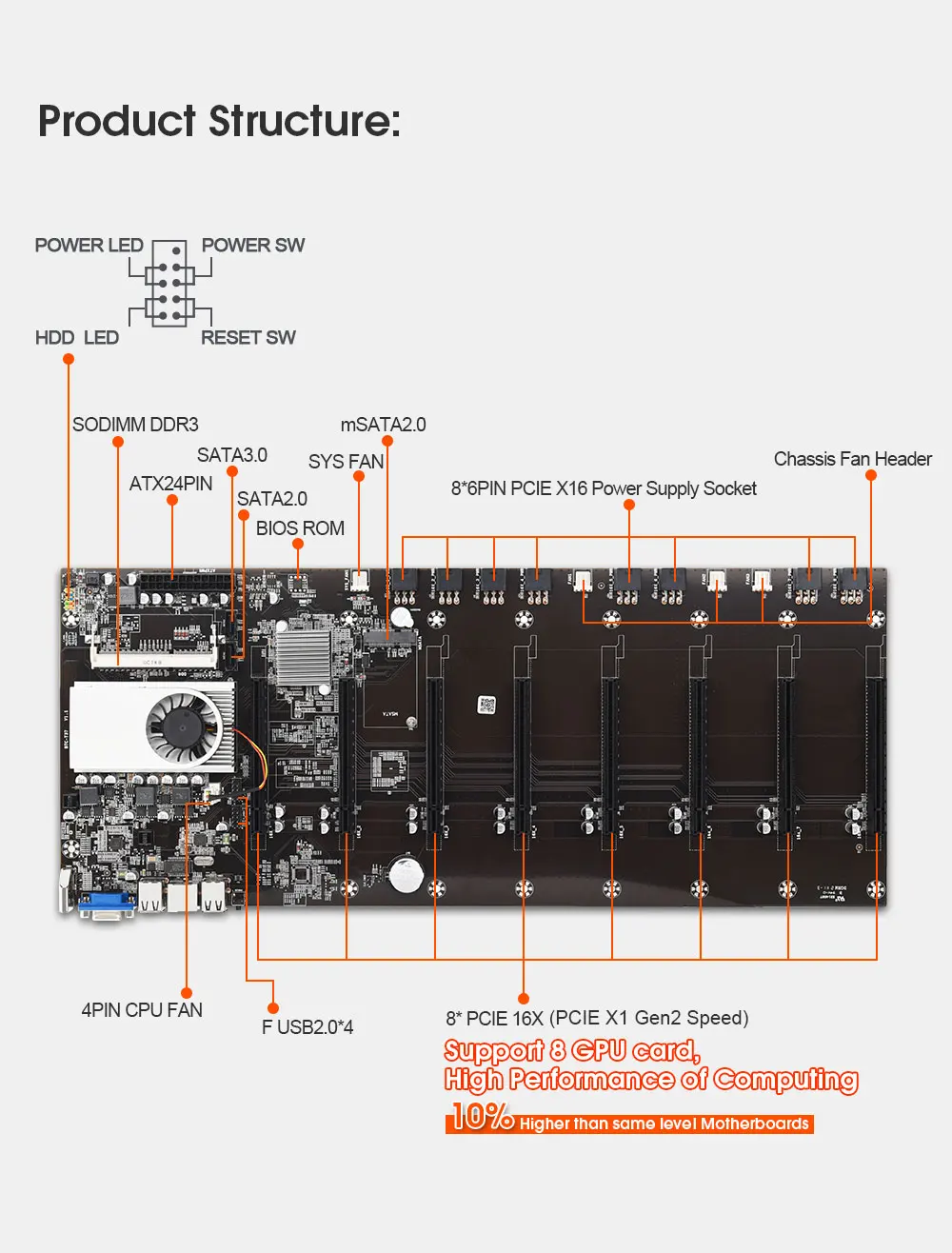Neu BTC-37 Bergmann Motherboard CPU Set 8 Video Card Slot DDR3 Speicher Integrierte VGA Interface Low Power Verbrauch
